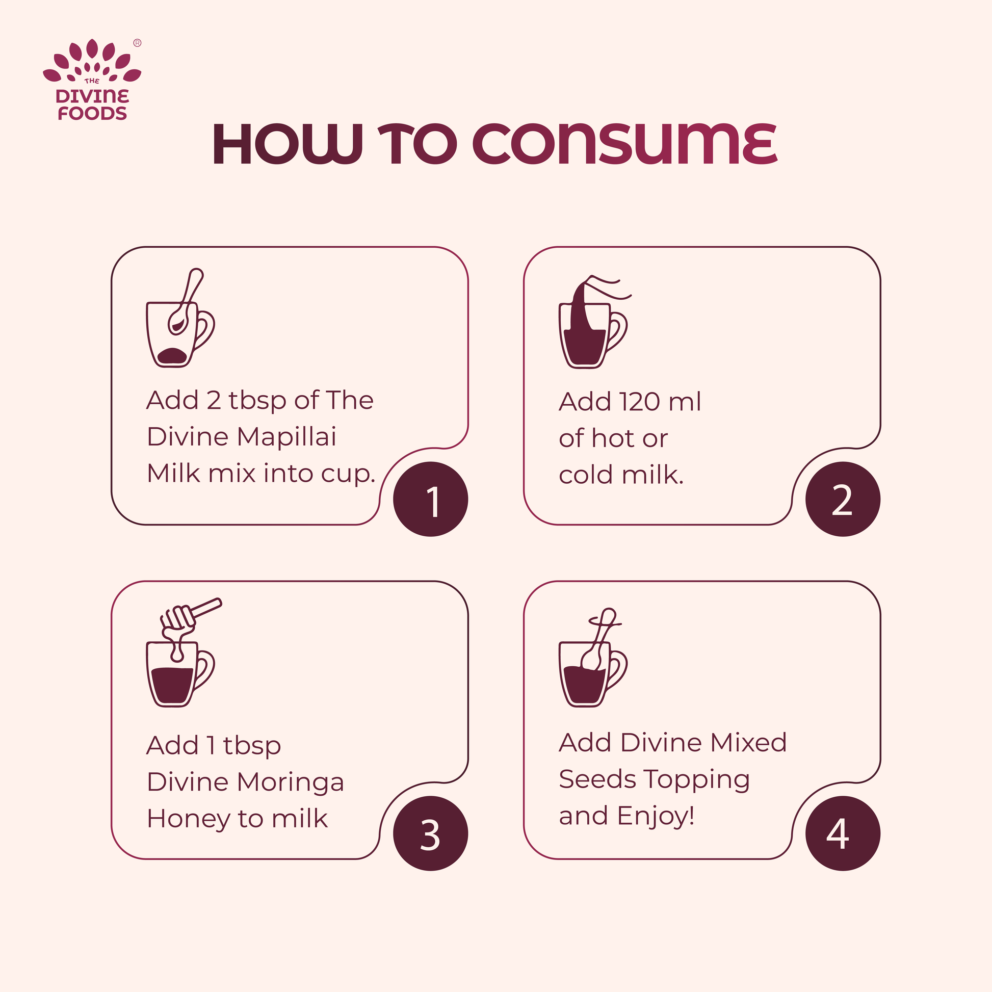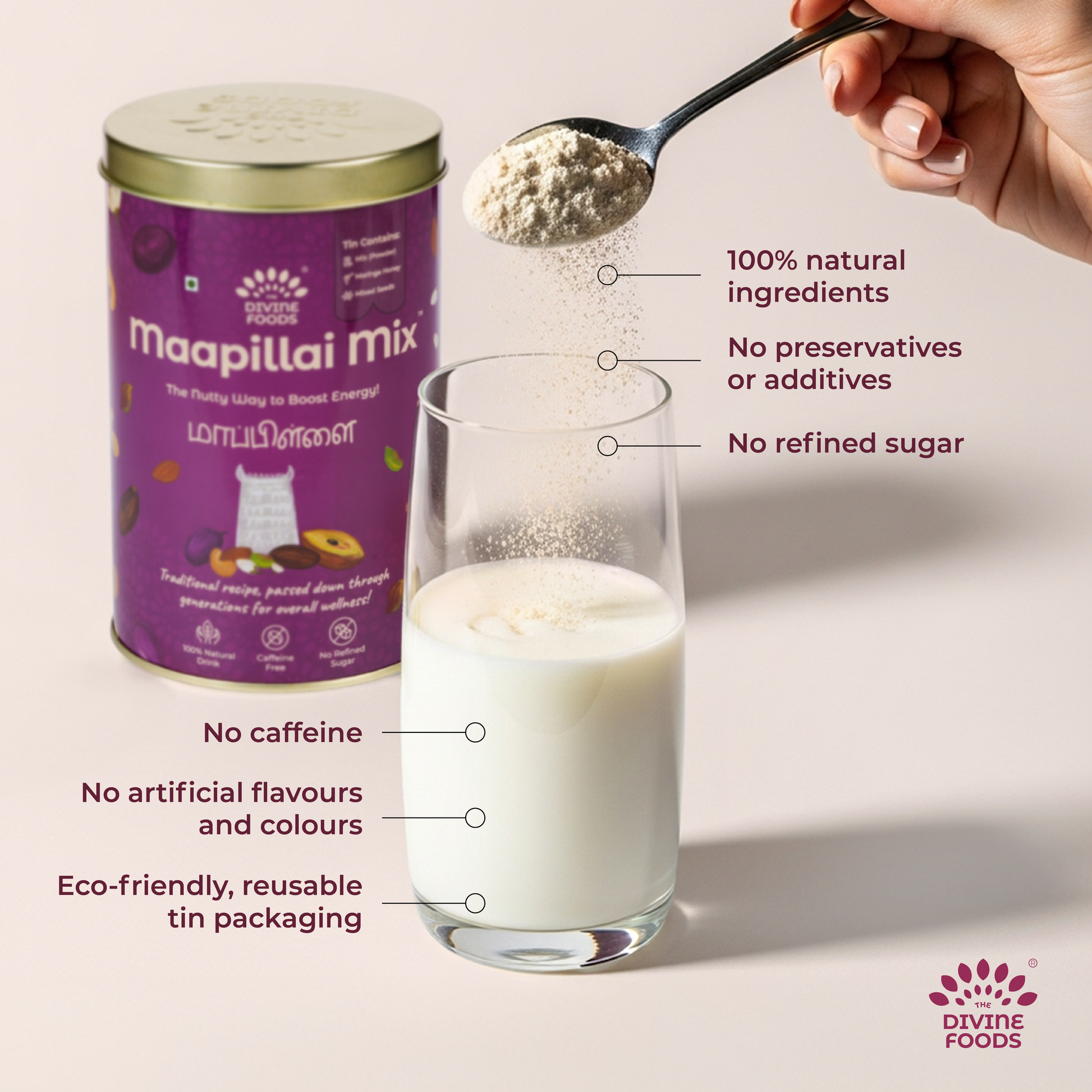 Step 1: Add 2 tbsp of The Divine Maapillai Milk mix into a cup.
