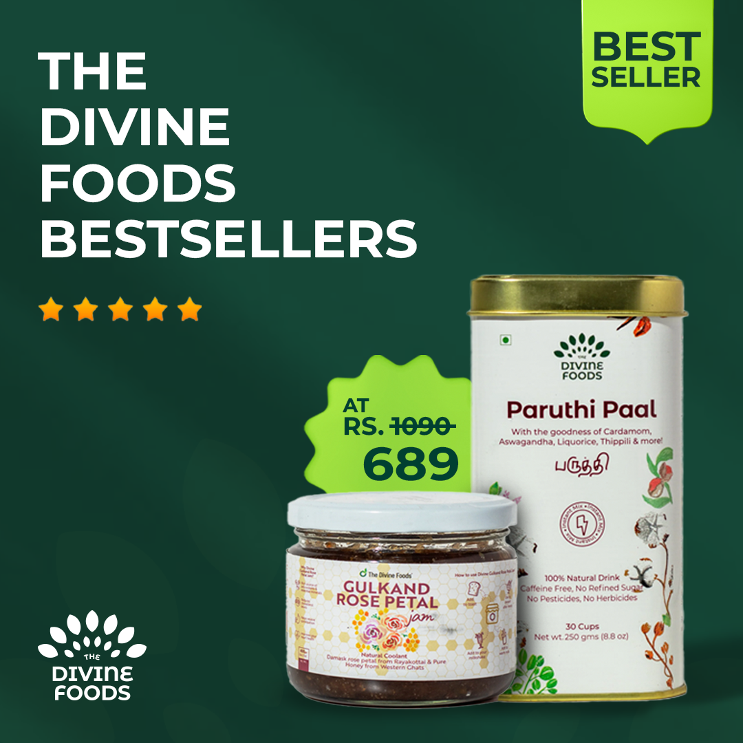 1. WHY 'THE DIVINE FOODS' COTTON SEED MILK MIX?: 'The Divine Foods' Cotton Seed Milk Mix is a blend of unique ingredients such as Cotton seed milk, Palmyrah candy powder, Barley, Palm Jaggery, Liquorice, Thippli, Dry ginger, Aswagandha, Black pepper, Cardamom, Rice powder and Coconut powder.