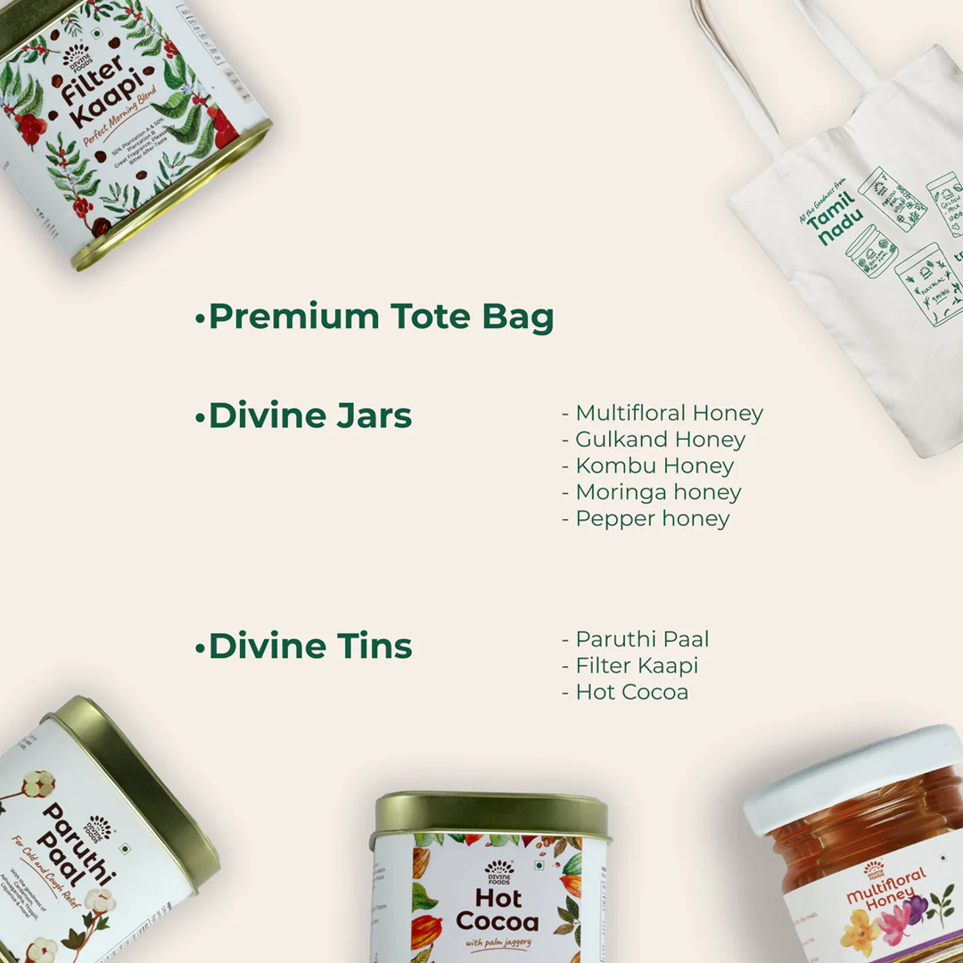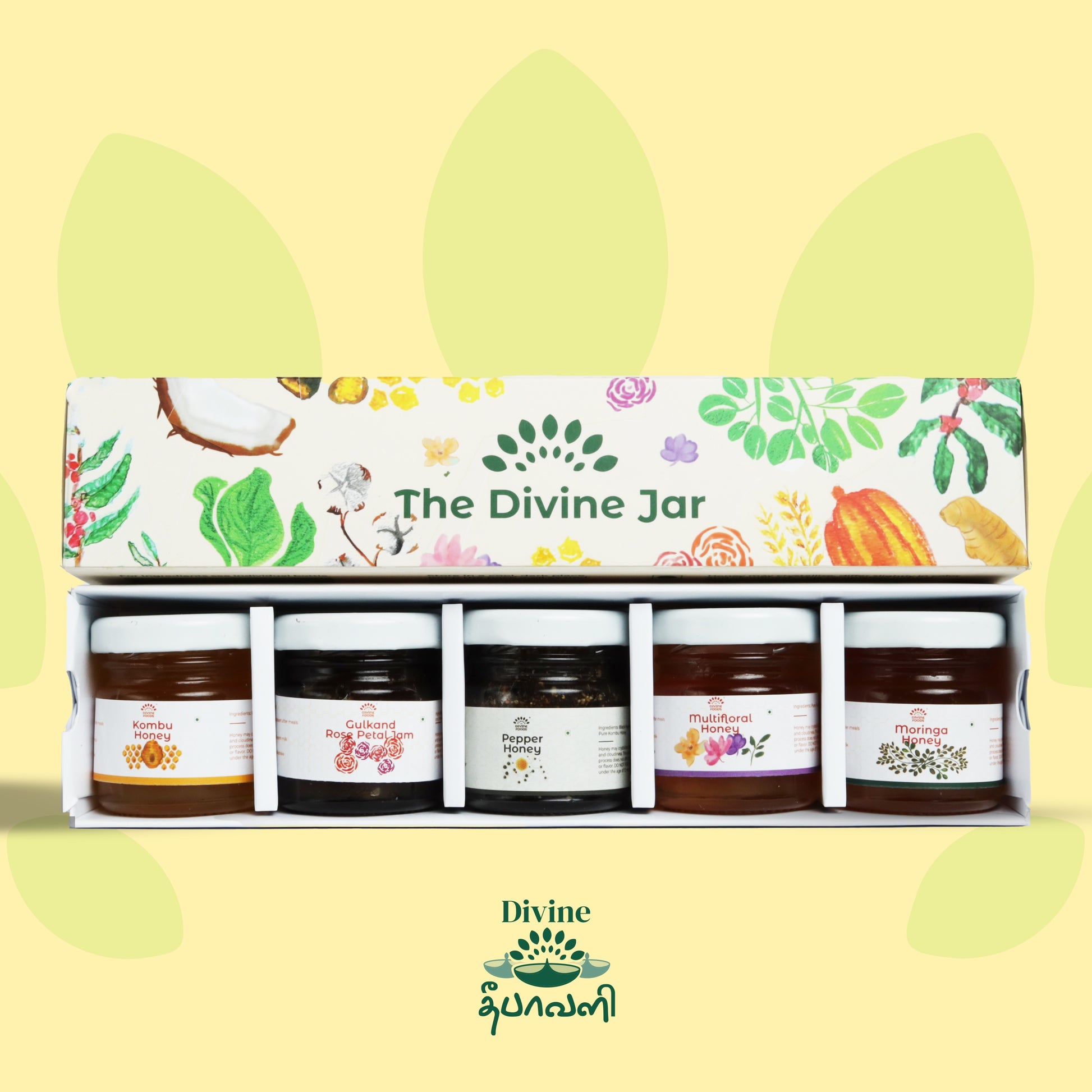 Why 'The Divine Superstar Combo' ?: The Divine expertly curated Festival Bliss Gift Box combines artisanal goodies and holistic treats to nourish body and soul. Perfect for any occasion, this thoughtful gift promotes balance, tranquility, and delight. Wrapped in eco-friendly materials, our Festival Bliss Gift Box is a meaningful way to share health, happiness, and harmony with loved ones.