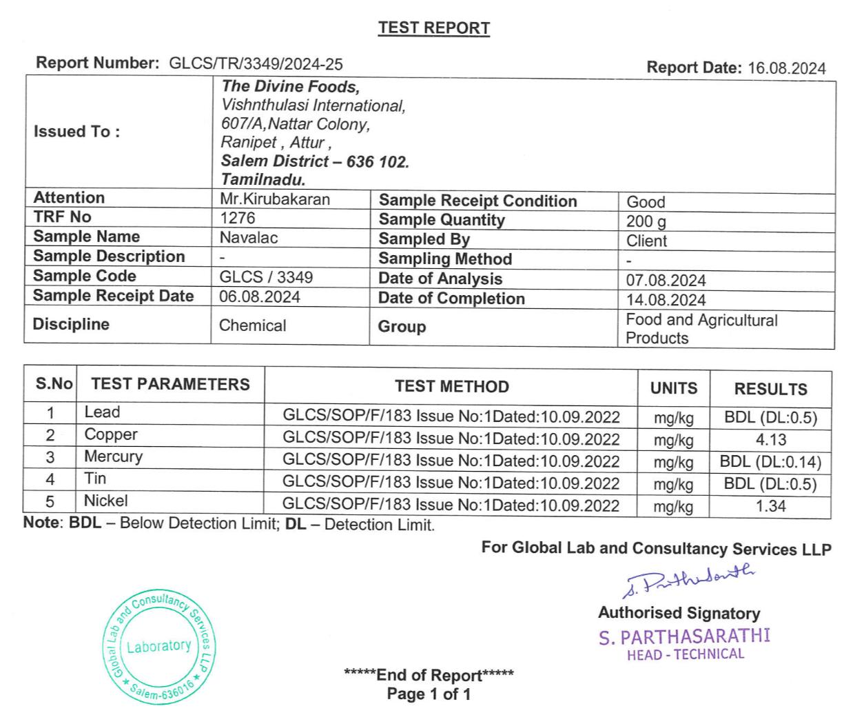 3. NATURAL INGREDIENTS ?: 'The Divine Foods'NAVALAC mix is free from additives, artificial colors, flavors, adulterants, and preservatives. It is 100% pure, organic, and certified pesticide-free.