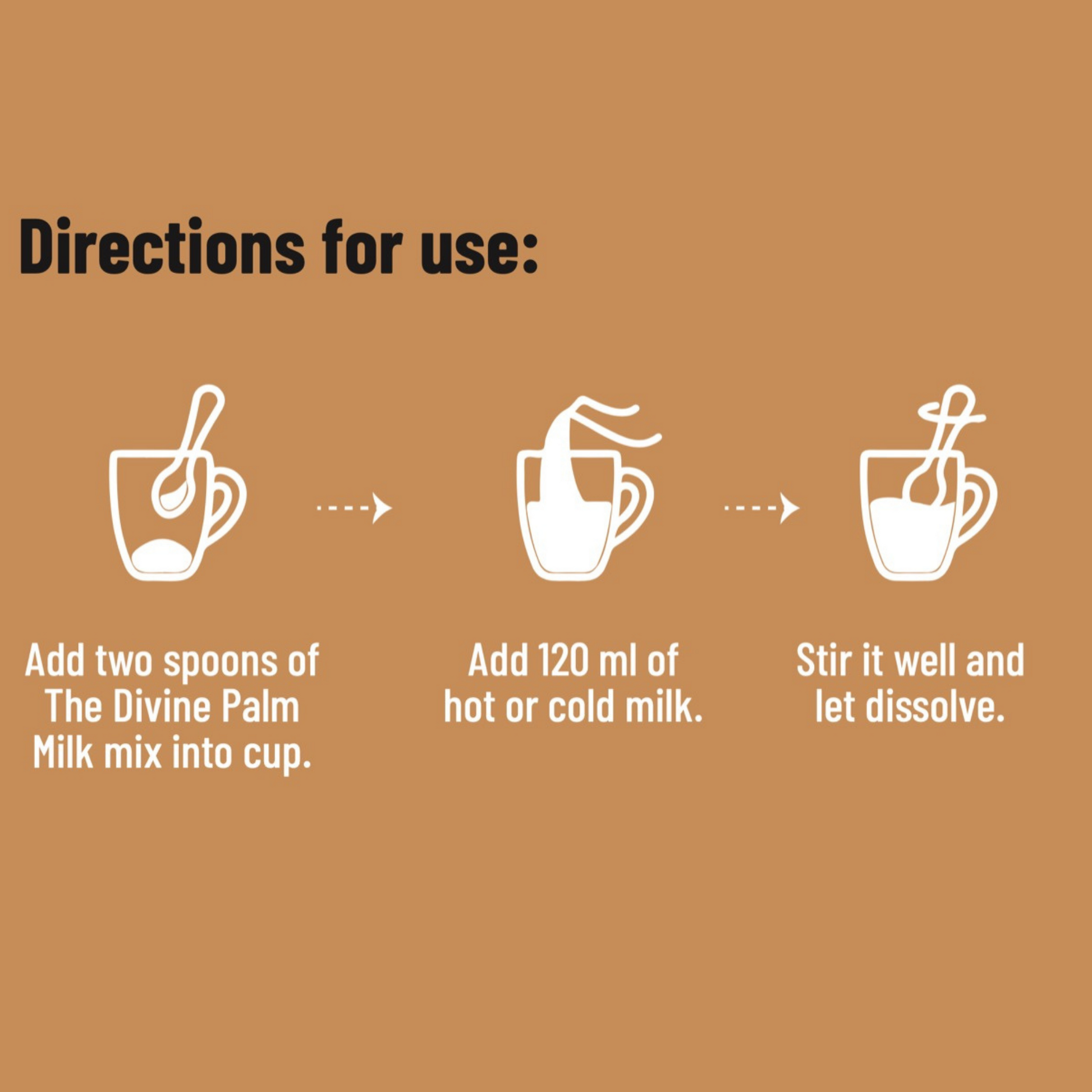 2. HOW TO MAKE IT?: 'The Divine Foods' Palm Milk can be mixed with hot or cold milk and consumed. It tastes way better with hot milk. Also, it can be mixed with milk of your choice such as soy milk, oat milk and so on. 'The Divine Foods' Palm Milk is considered to be a great bedtime drink and can be consumed every night.
