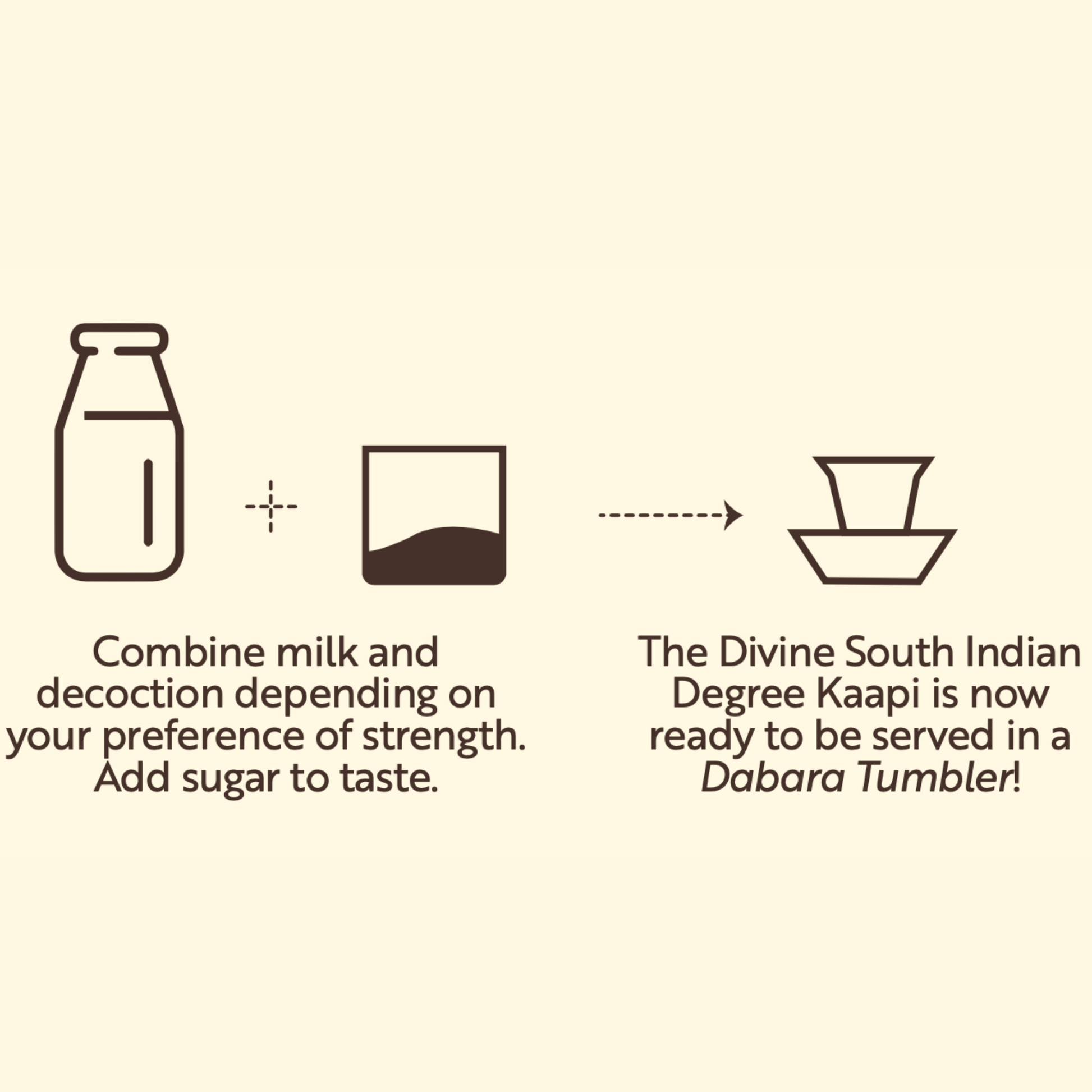 5. HOW TO MAKE IT?: Add coffee powder to the filter Fill it to the brim with water that is below boiling temperature, and cover the lid, After 10-15 minutes for your decoction to drip down to the bottom jar. Pour fresh decoction add milk and enjoy.