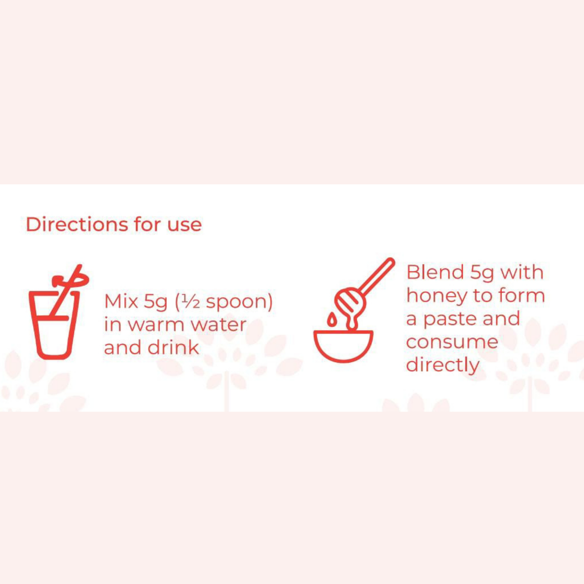 Blend 5 g of the powder with pure honey to form a paste and consume directly.