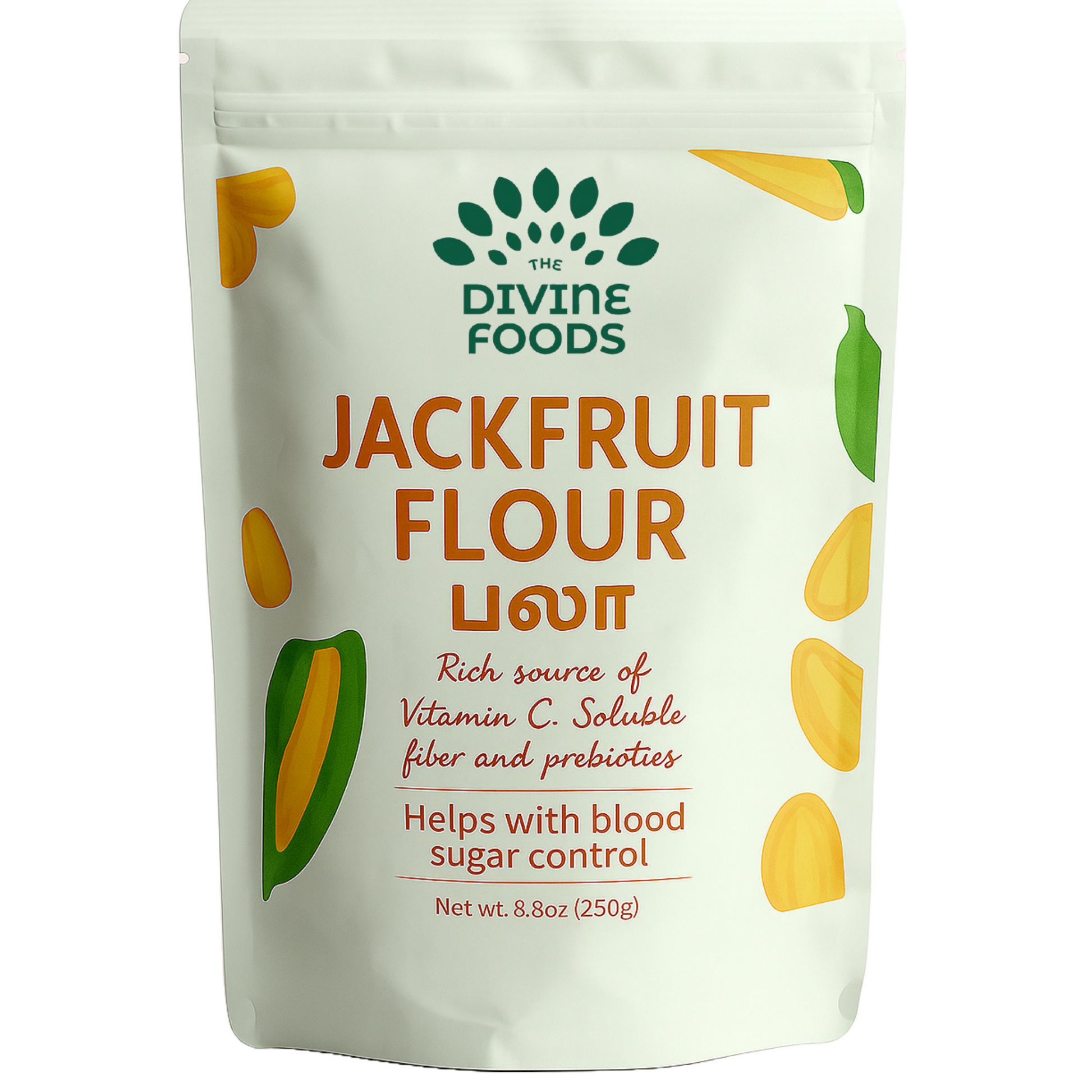 1. WHY DIVINE FOODS Jackfruit POWDER? : Jackfruit is the official fruit of Tamil Nadu. Panruti Panruti in the Cuddalore district of Tamil Nadu is said to be the hub of Jackfruits as it holds a unique taste. Although jackfruits are grown all over Tamil Nadu, there is a separate place in the market for jackfruits in Panruti. The Divine Foods Jackfruit Powder Helps control blood sugar levels and aids in digestion