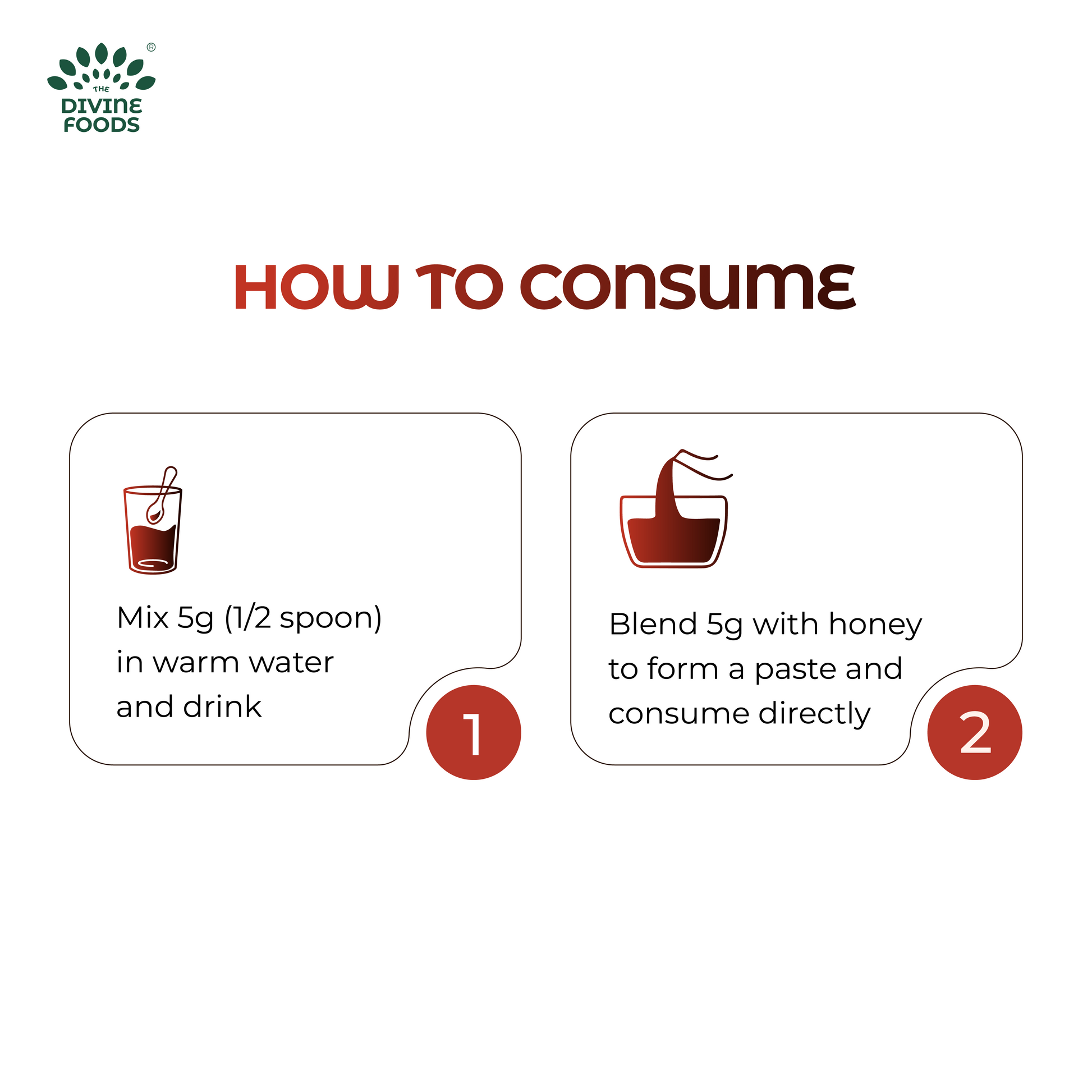 Blend 5 g of the powder with pure honey to form a paste and consume directly.
